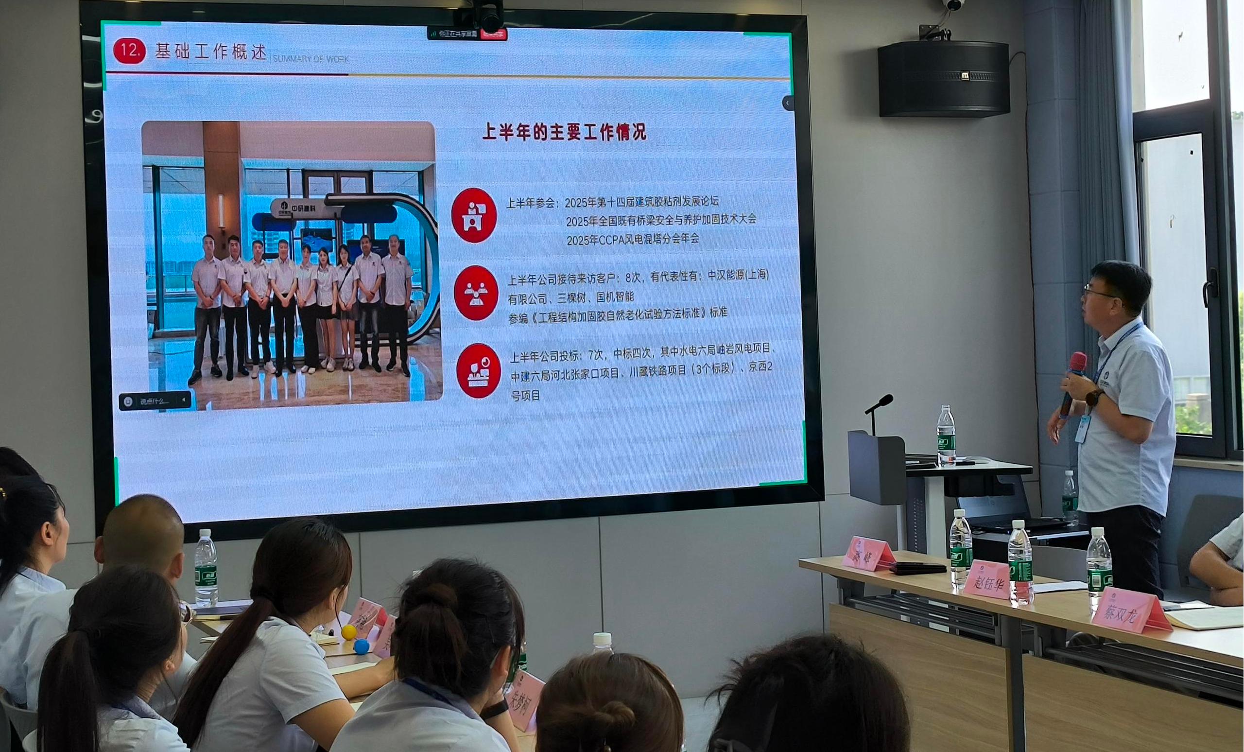 ?7月19日,年中总结会议在激昂奋进的氛围中拉开帷幕。公司总经理首先发表致辞,回顾了2025年上半年公司在市场拓展、技术创新及团队建设等方面取得的良好的成绩,并对全体员工的辛勤付出致以诚挚感谢。??